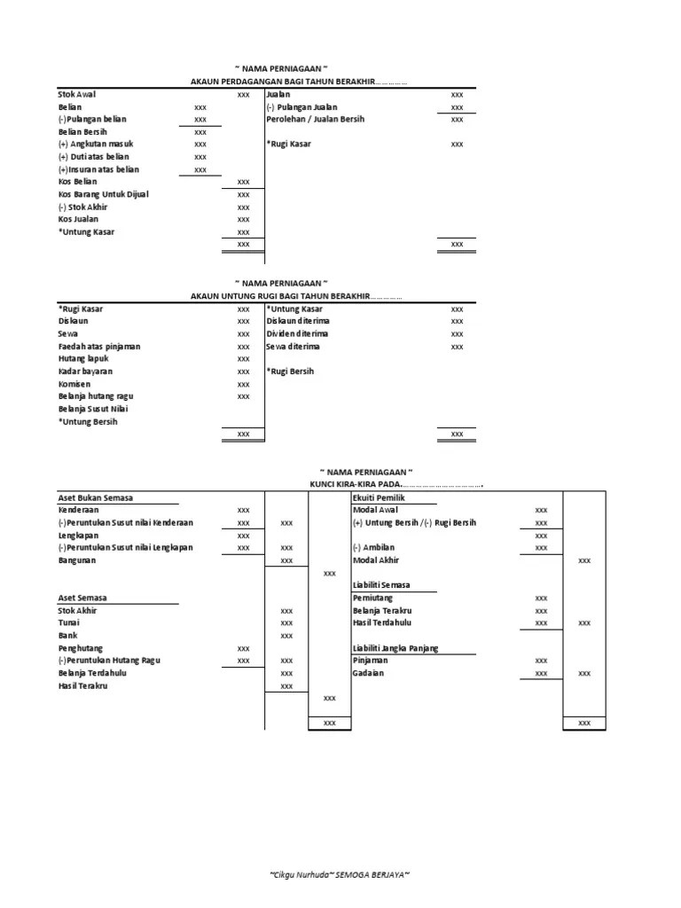 Format Kunci Kira Kira - Format Kunci Kira Kira - Format penyata pendapatan dan kunci kira kira.. For accounting and prinsip akaun student. Save this book to read format penyata kewangan pendapatan dan kunci kira kira pdf ebook at our online library. Format akaun perdagangan & untung rugi secara berasingan. Contextual translation of penyata kunci kira kira into english. Balance sheet, trial balance, about %s left, kunci kirakira.